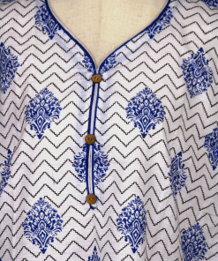 White and Blue Printed Cotton Kurti