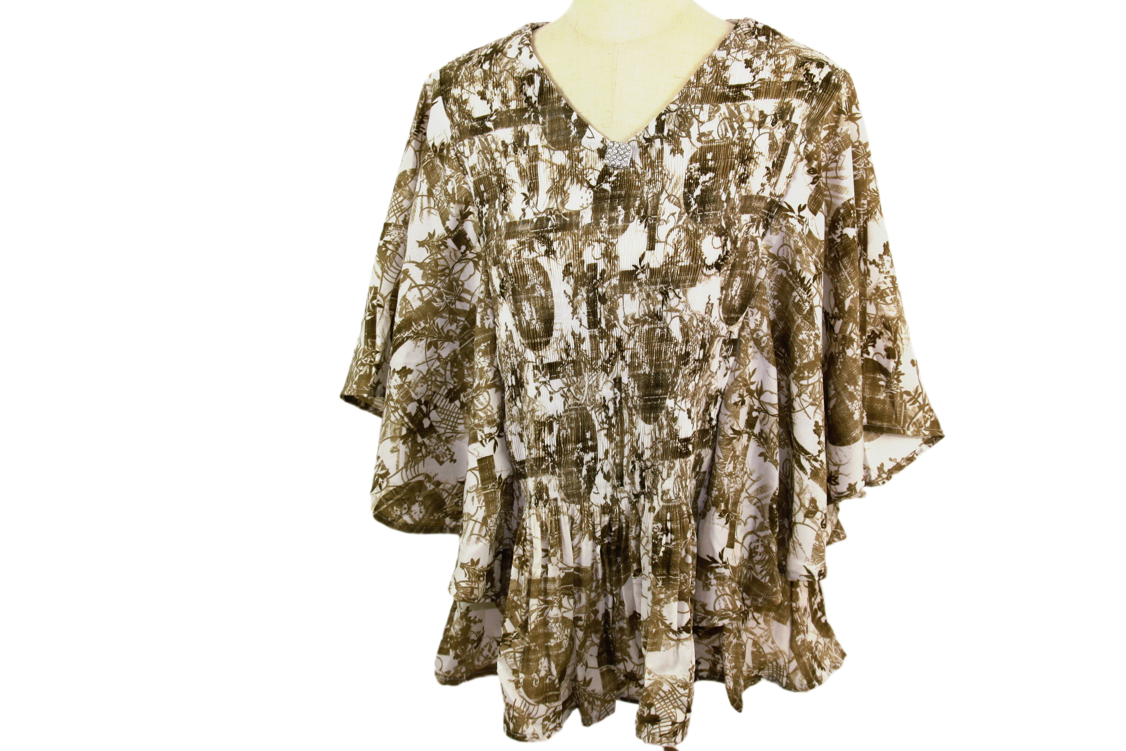 Light Brown Printed Top with Flare Sleeves