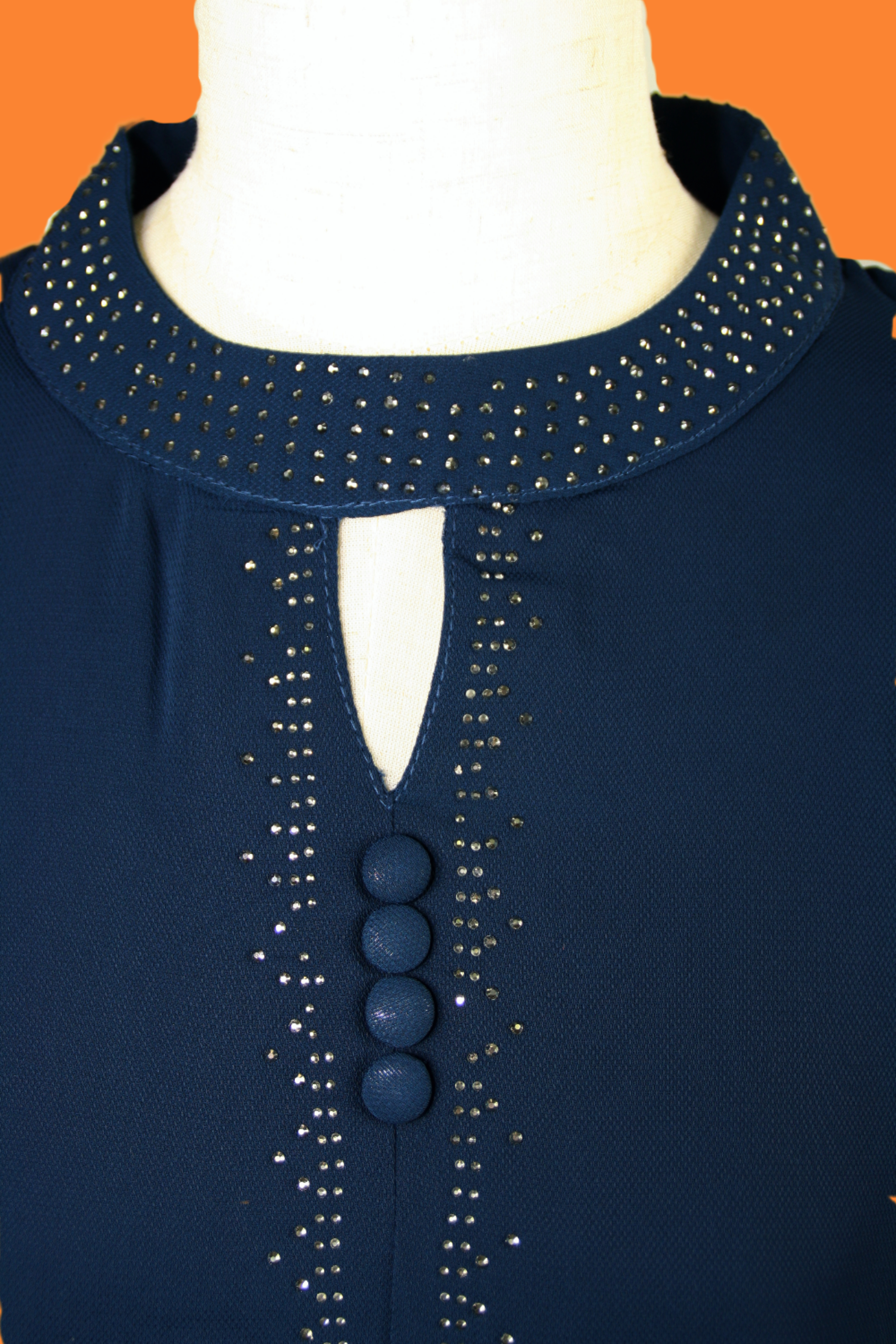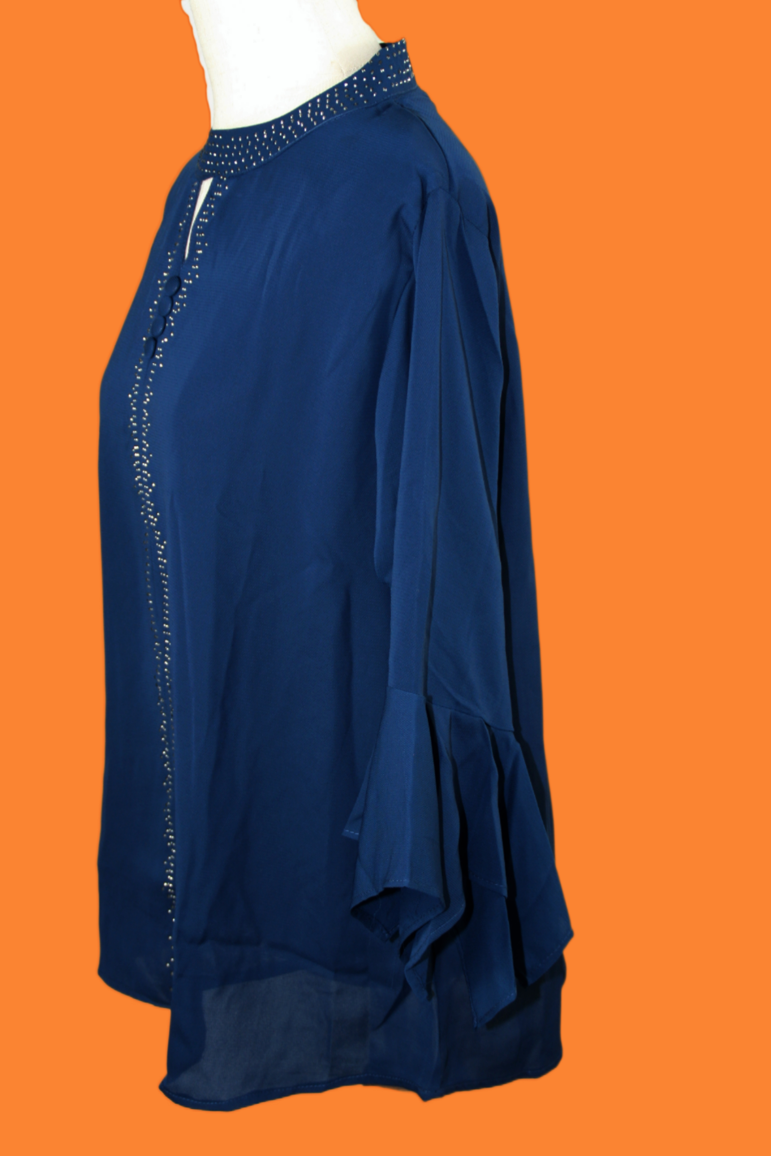 Enhance your formal wardrobe with our ‘Navy Blue Top with Silver Stones’. This sophisticated women’s formal top features an elegant navy blue base complemented by shimmering silver stone detailing, creating a perfect balance of elegance and style. Ideal for evening events and professional settings, the refined design ensures a polished look. Discover timeless fashion with this beautifully crafted piece, tailored for ultimate comfort and grace in every occasion.