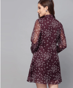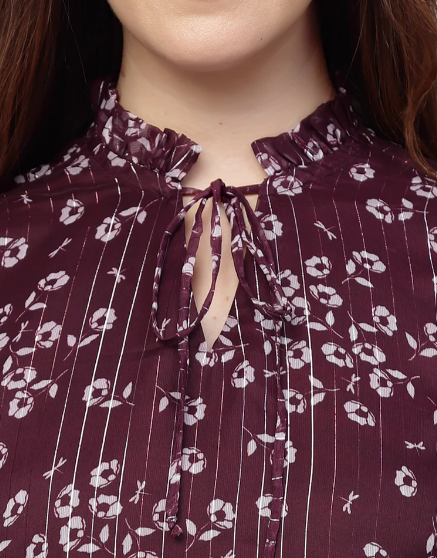 Make a statement with the Wine Chiffon Fit and Flare Dress, a timeless piece that exudes charm and grace.